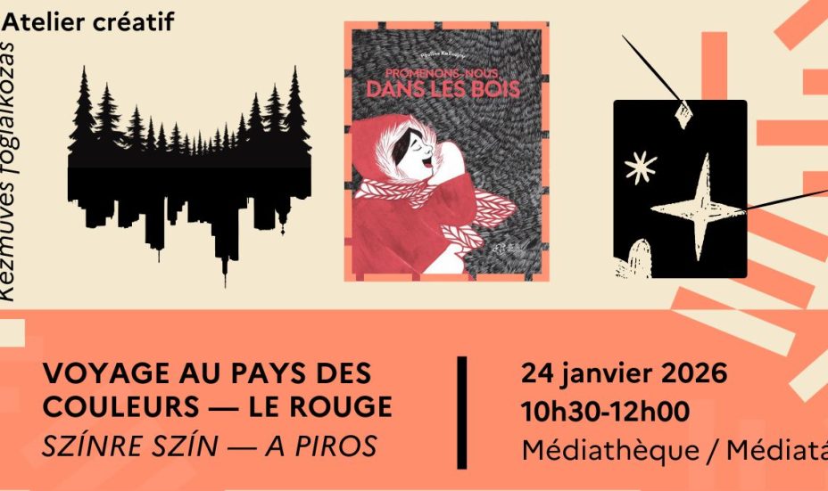 Január 24-én szombaton 10.30 és 12.00 között folytatjuk kalandozásunkat a színek birodalmában: Pauline Kalioujny Promenons-nous, dans le bois c. albumán keresztül ismerkedünk a piros színnel, ezután pedig az idei Olvasás Éjszakájának témája ("Város és vidék") inspirálta karcrajzokat fogunk készíteni.